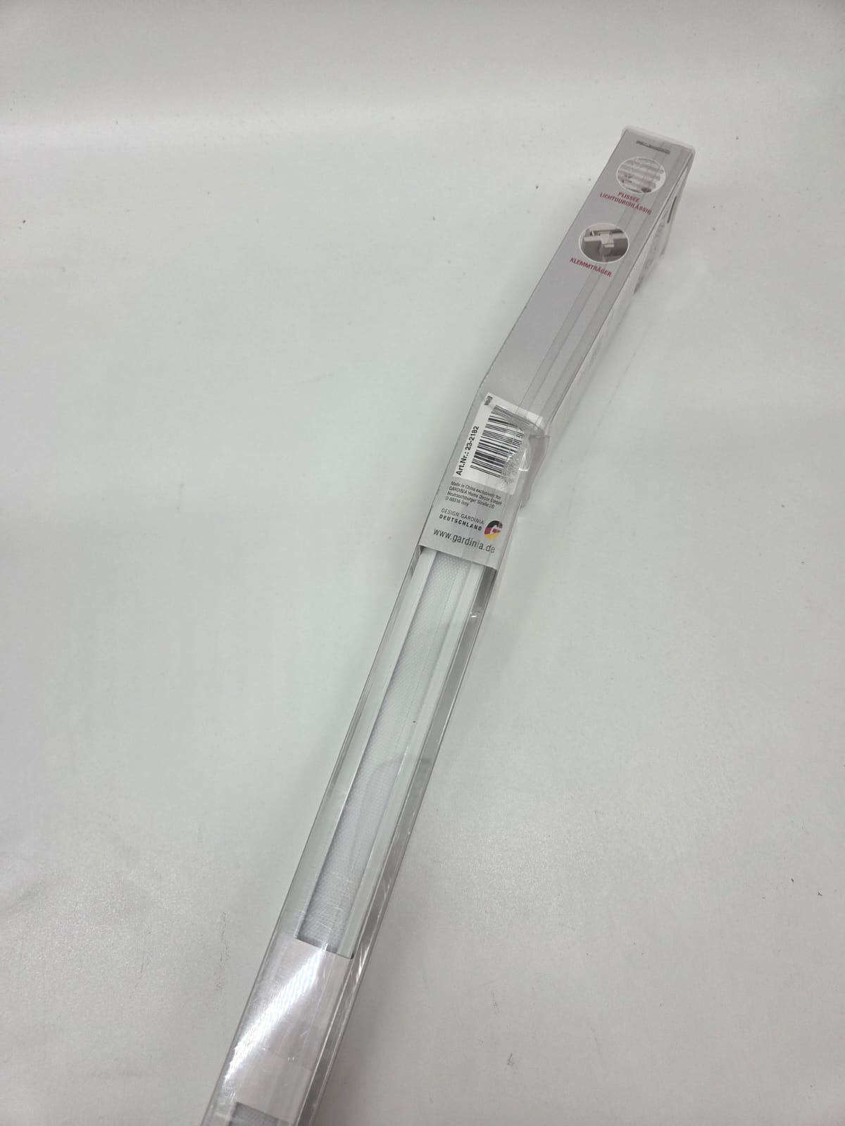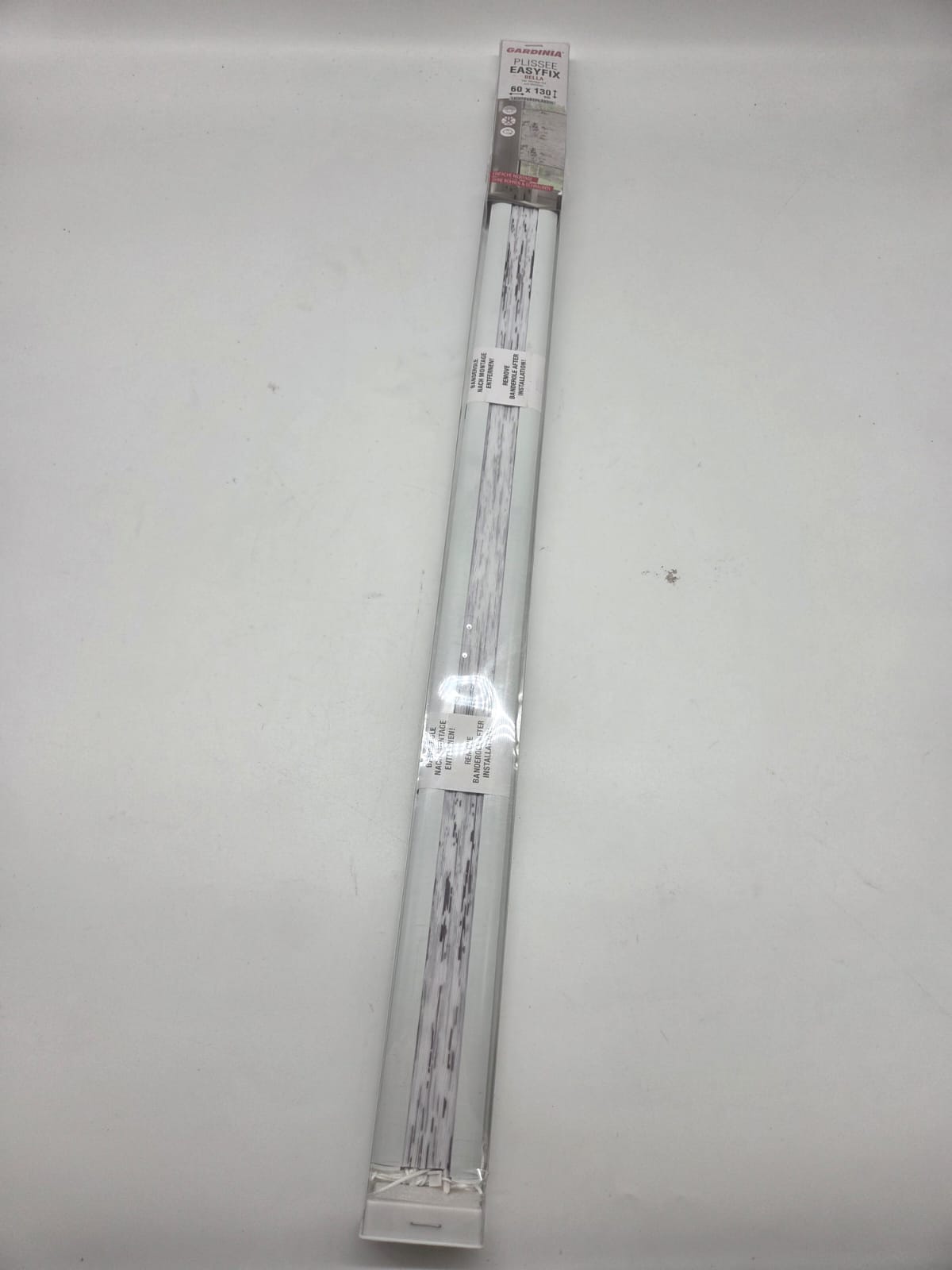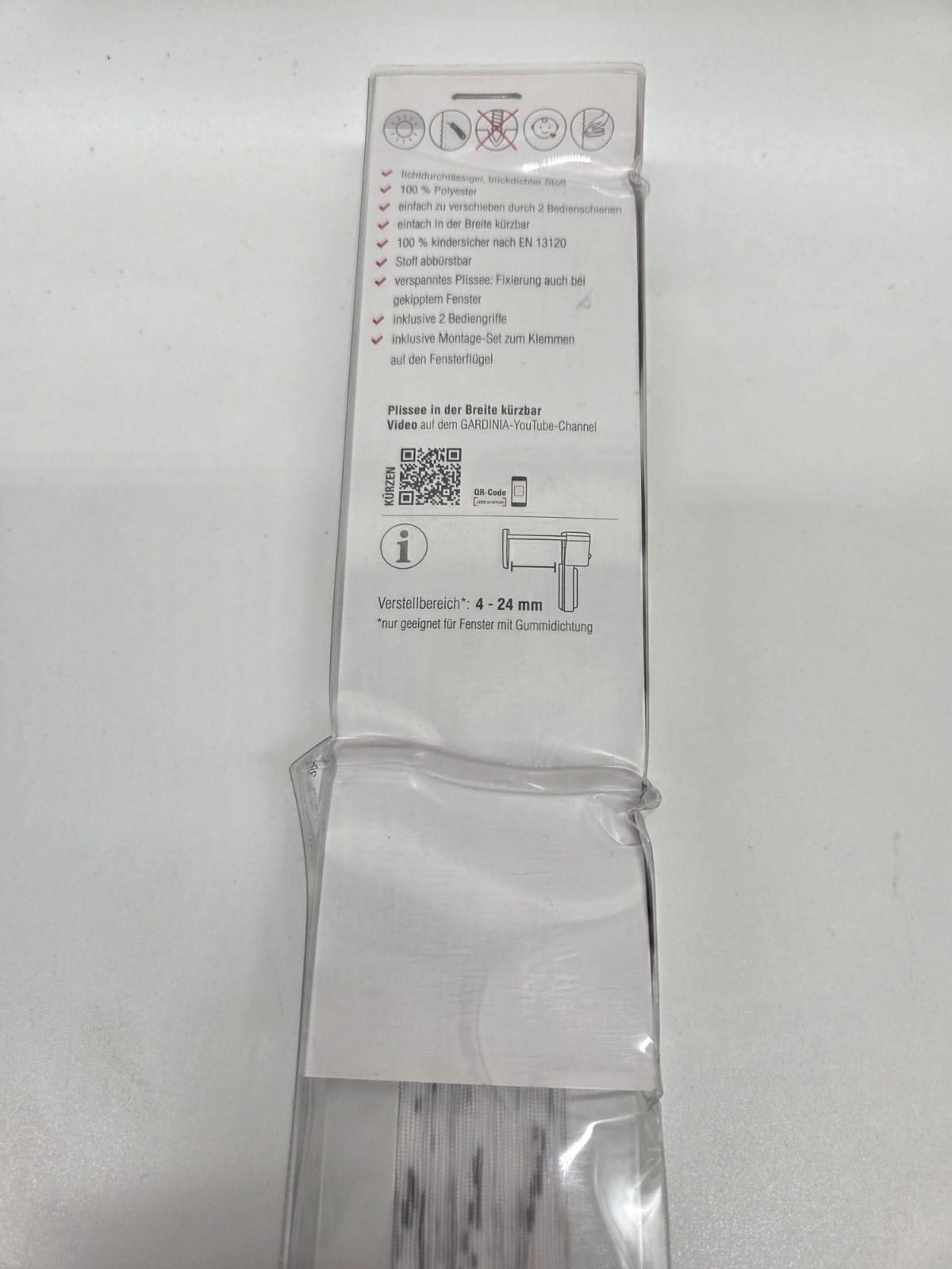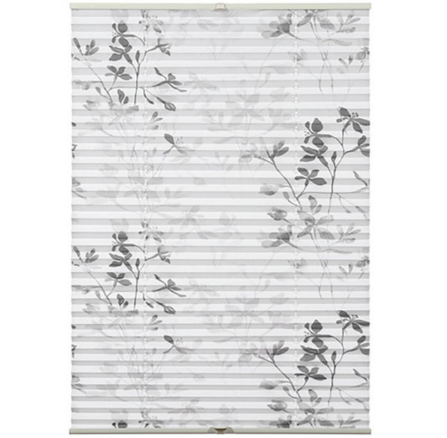 Modernes Plissee mit stilvollem Blätter-Dekor in Weiß – einfach & werkzeuglos montierbar dank Klemmträgern. Neu & unbenutzt – lediglich Verpackung beschädigt (B-Ware).