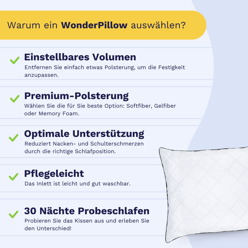 Flauschig wie eine Wolke – Volumen individuell anpassbar! Ein Traum für alle, die weiche Kissen lieben: Das WonderPillow von Zelesta bietet ein wunderbar flauschiges Schlaferlebnis dank hochwertiger Softfiber-Füllung.